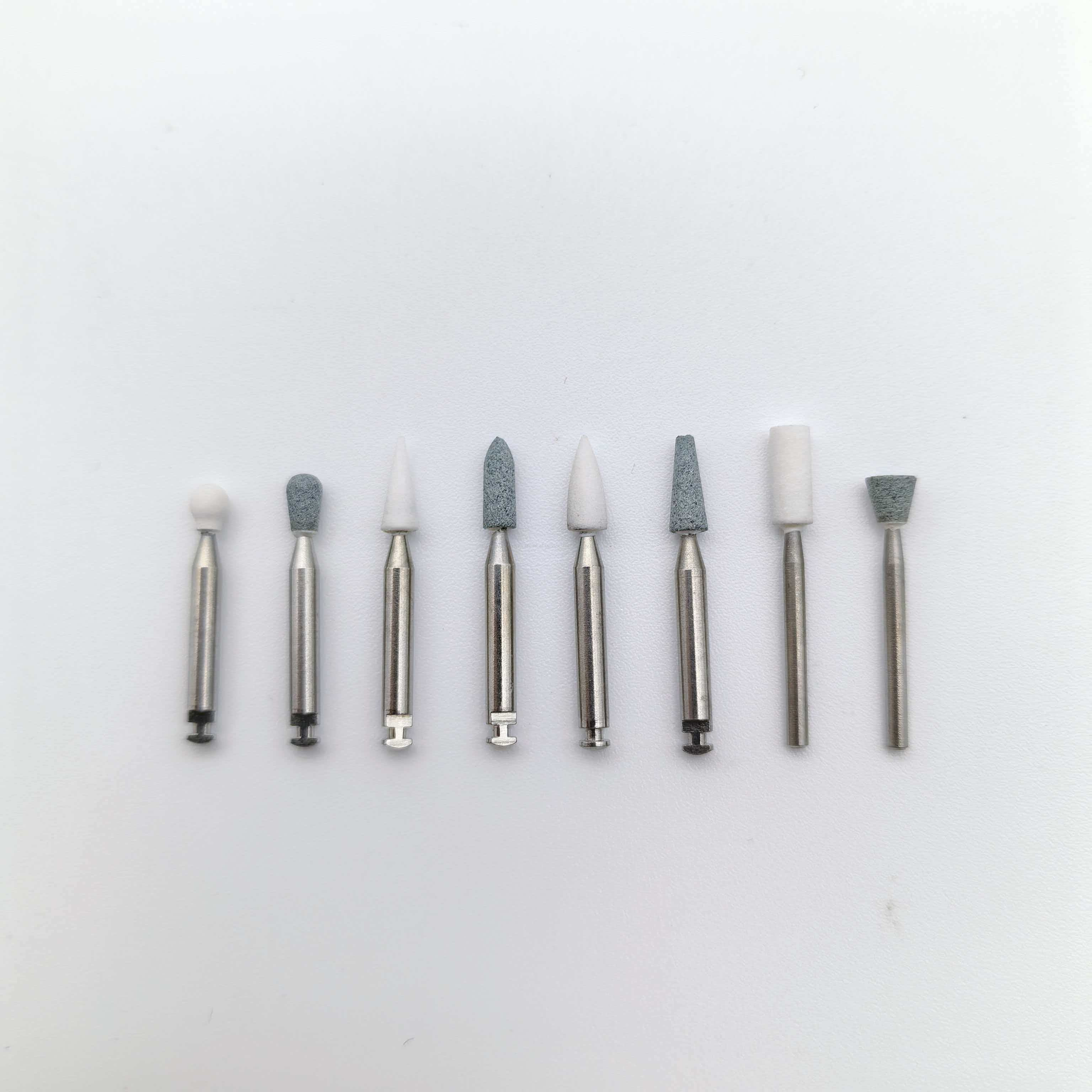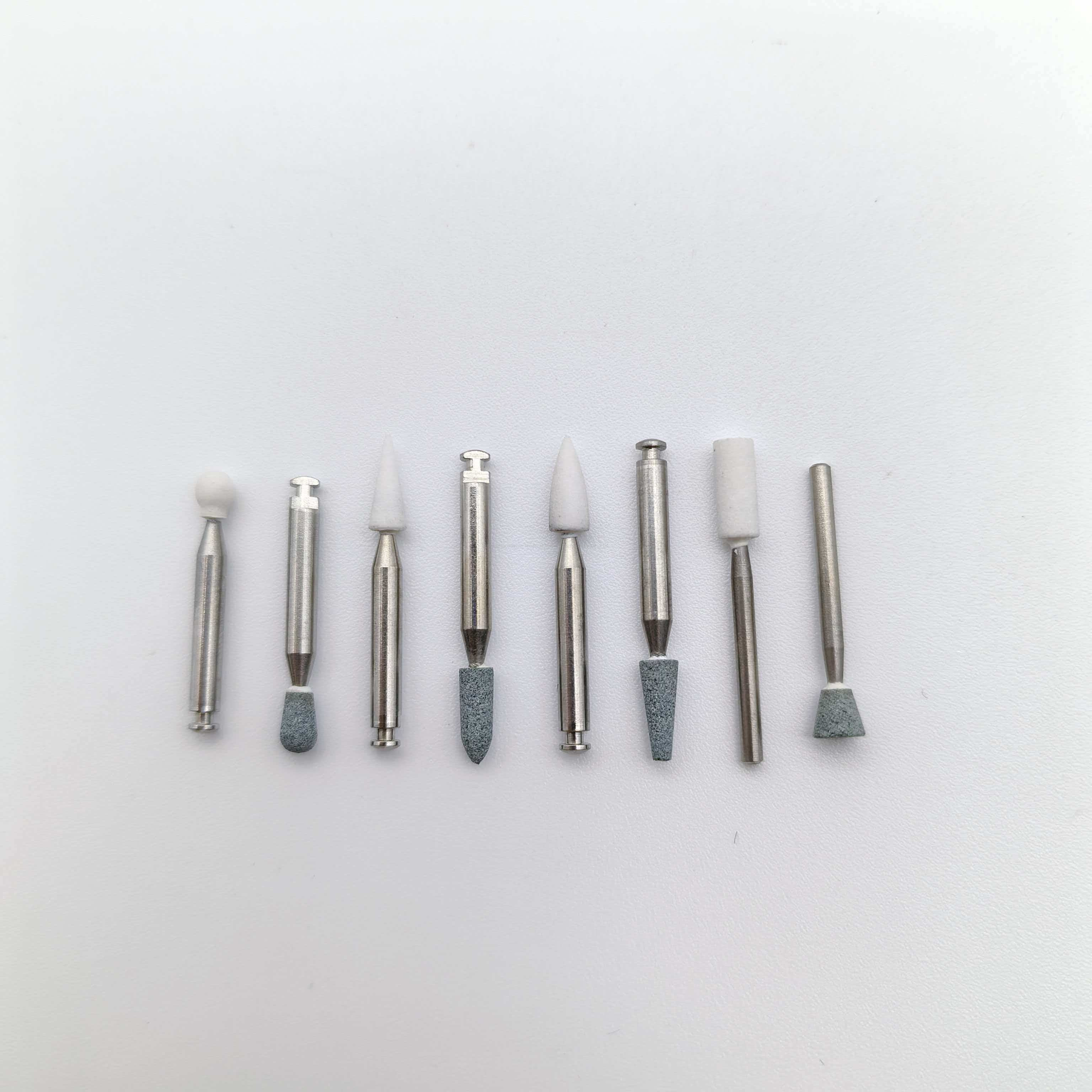 Es ist in verschiedenen Formen erhältlich, darunter Kegel, Kugel, Zylinder und Scheibe, und kann Interproximalräume, Grübchen und Fissuren, Ränder und Restaurationsoberflächen präzise behandeln und erfüllt dabei die Anforderungen verschiedener Prozesse wie Grobschleifen, Feinfinishen und Polieren.