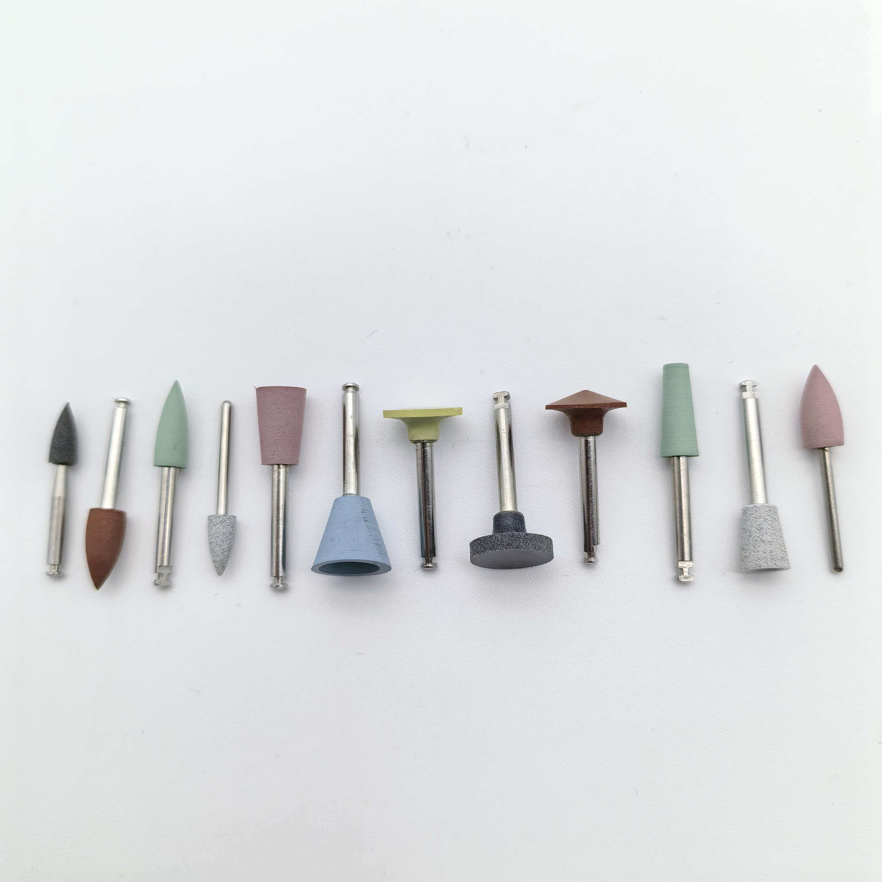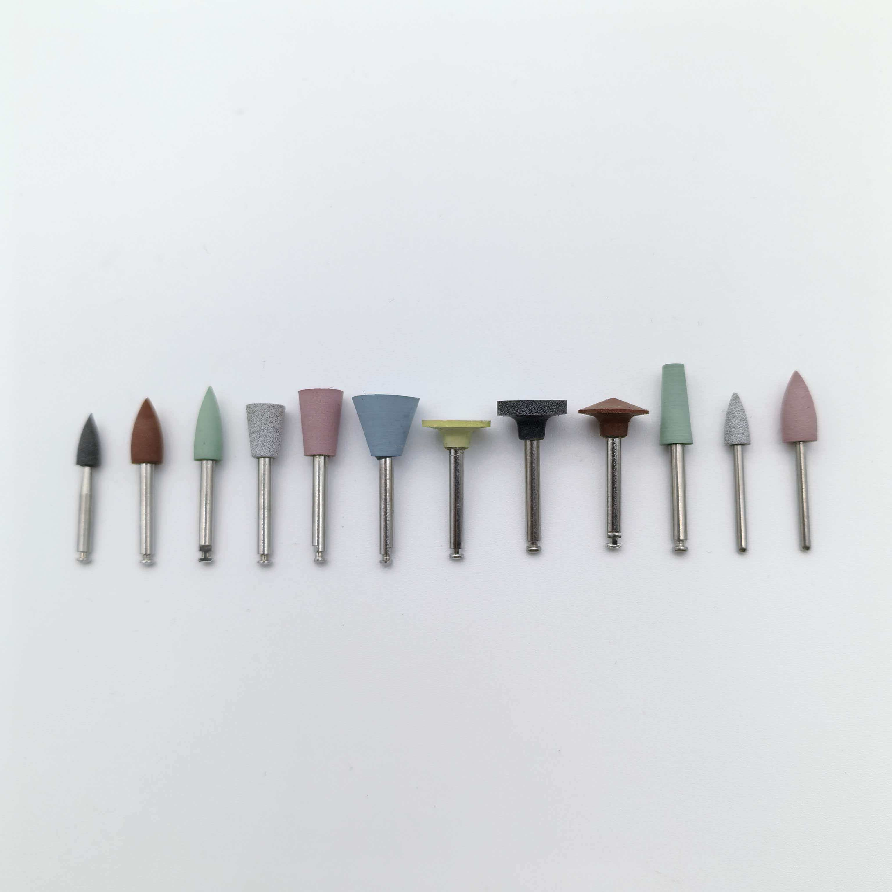 Es ist in verschiedenen Formen erhältlich, darunter Kegel, Kugel, Zylinder und Scheibe, und kann Interproximalräume, Grübchen und Fissuren, Ränder und Restaurationsoberflächen präzise behandeln und erfüllt dabei die Anforderungen verschiedener Prozesse wie Grobschleifen, Feinfinishen und Polieren.
